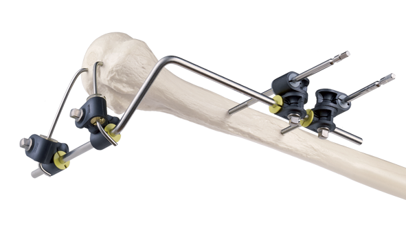 The Tension Guide Fixation – TGF, for superior humerus fractures is based on two Kirschner wires placed under tension and stabilized by two pins connected by a single “L” body.